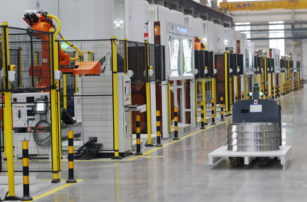 5月22日,自動導引車在洛軸集團智能工廠生產線上作業(yè)。新華社記者 李嘉南 攝