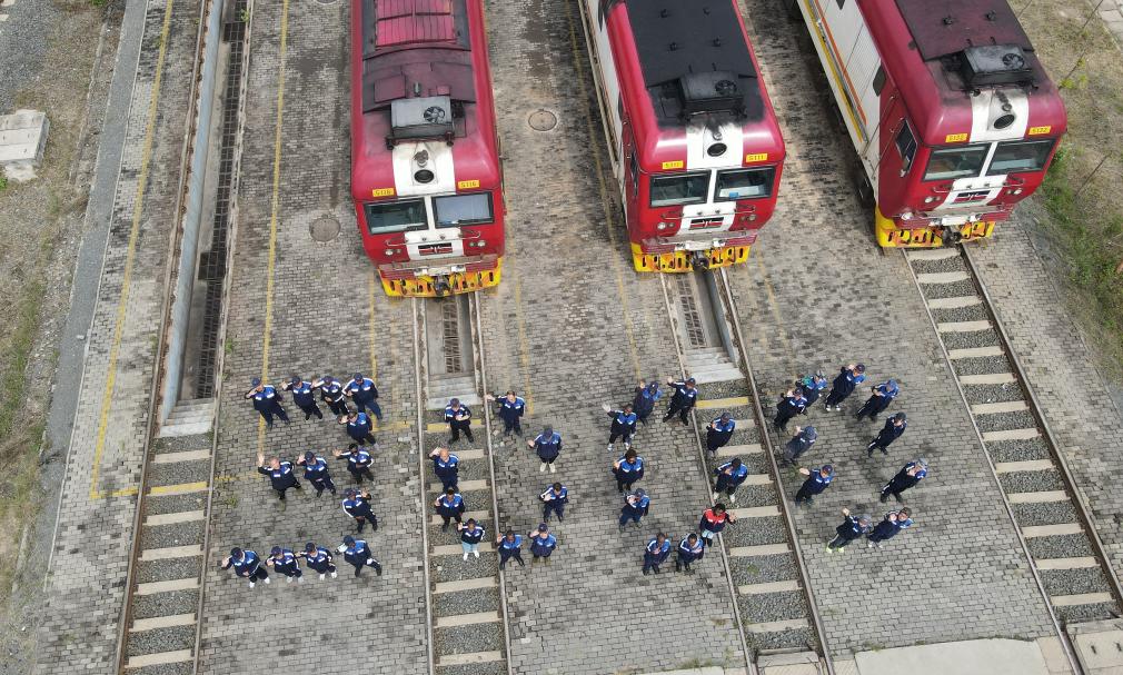 2025年8月19日,在肯尼亞內(nèi)羅畢非洲之星鐵路運(yùn)營(yíng)有限責(zé)任公司機(jī)務(wù)運(yùn)轉(zhuǎn)整備場(chǎng),中肯兩國(guó)鐵路工作者在機(jī)車(chē)前站列并組成“3000”字樣,以紀(jì)念蒙內(nèi)鐵路實(shí)現(xiàn)安全運(yùn)營(yíng)3000天(無(wú)人機(jī)照片)。新華社記者 楊光 攝