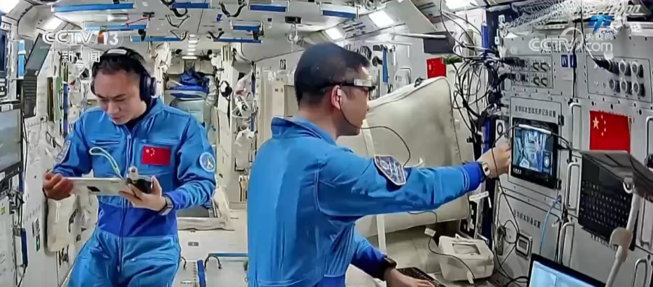 在健康維護與保障方面,乘組完成了質(zhì)量測量、聽力測試等多項醫(yī)學(xué)檢查,積極進行身體鍛煉,并利用神經(jīng)肌肉刺激儀進行肌肉放松與萎縮防護,對抗失重生理效應(yīng)。