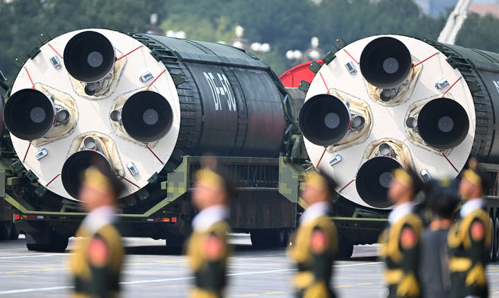 ↑9月3日,紀念中國人民抗日戰(zhàn)爭暨世界反法西斯戰(zhàn)爭勝利80周年大會在北京隆重舉行。這是核導彈第二方隊接受檢閱。