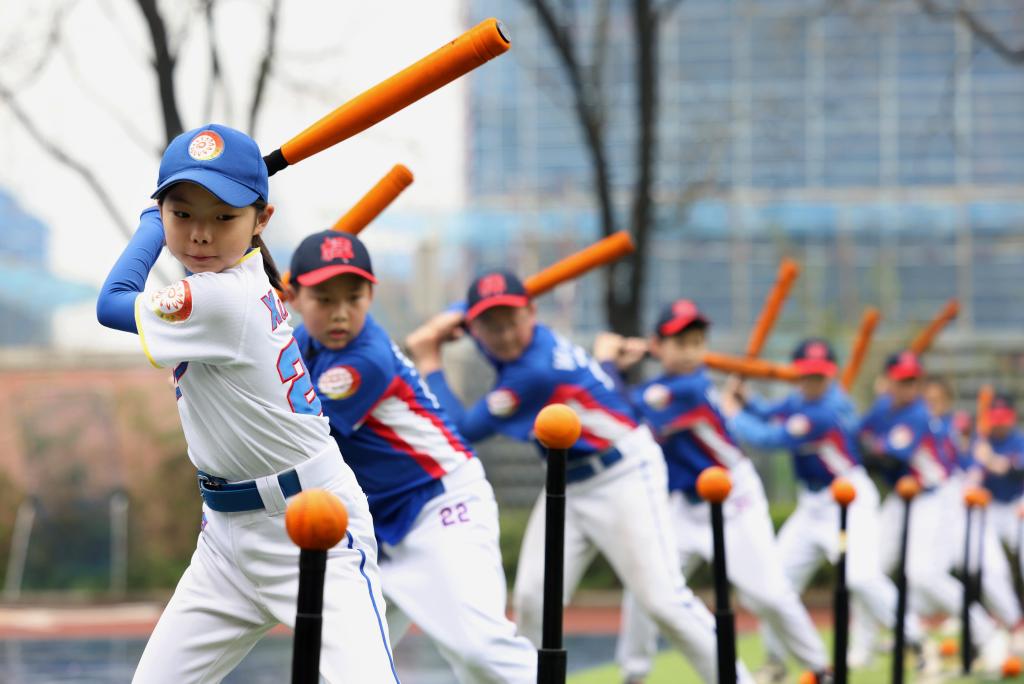 圖為2023年3月23日,在合肥市元一名城小學(xué),學(xué)生在進行軟式棒壘球訓(xùn)練。新華社發(fā)(解琛 攝)
