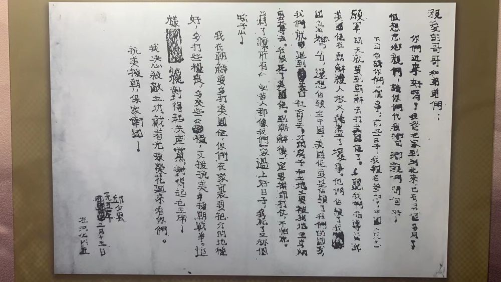 這是邱少云寫給家里的信(沈陽抗美援朝烈士陵園供圖)。