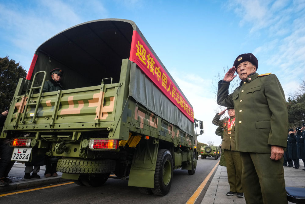 2024年11月28日,第十一批在韓中國人民志愿軍烈士遺骸回國。運(yùn)送志愿軍烈士遺骸的車輛駛向沈陽抗美援朝烈士陵園。新華社記者 潘昱龍 攝