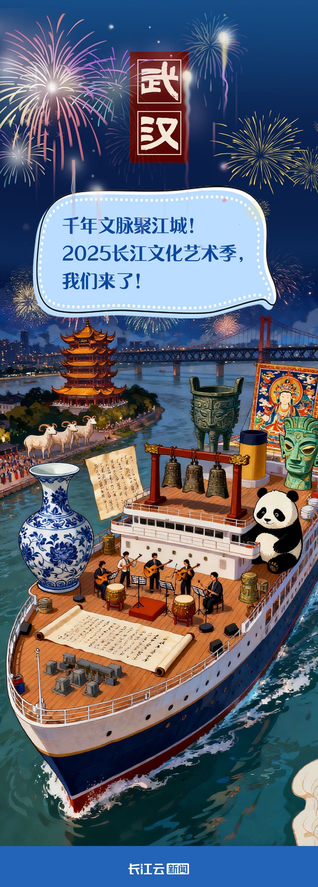 溯流而上,聽曾侯乙編鐘奏響千年清音,看三星堆神樹閃耀古蜀智慧;與熊貓漫步蜀地竹林……今天(9月12日),2025長江文化藝術季即將在武漢盛大啟幕,讓我們跟著沿江各地的國寶一起共赴這場跨越山河的藝術盛宴!