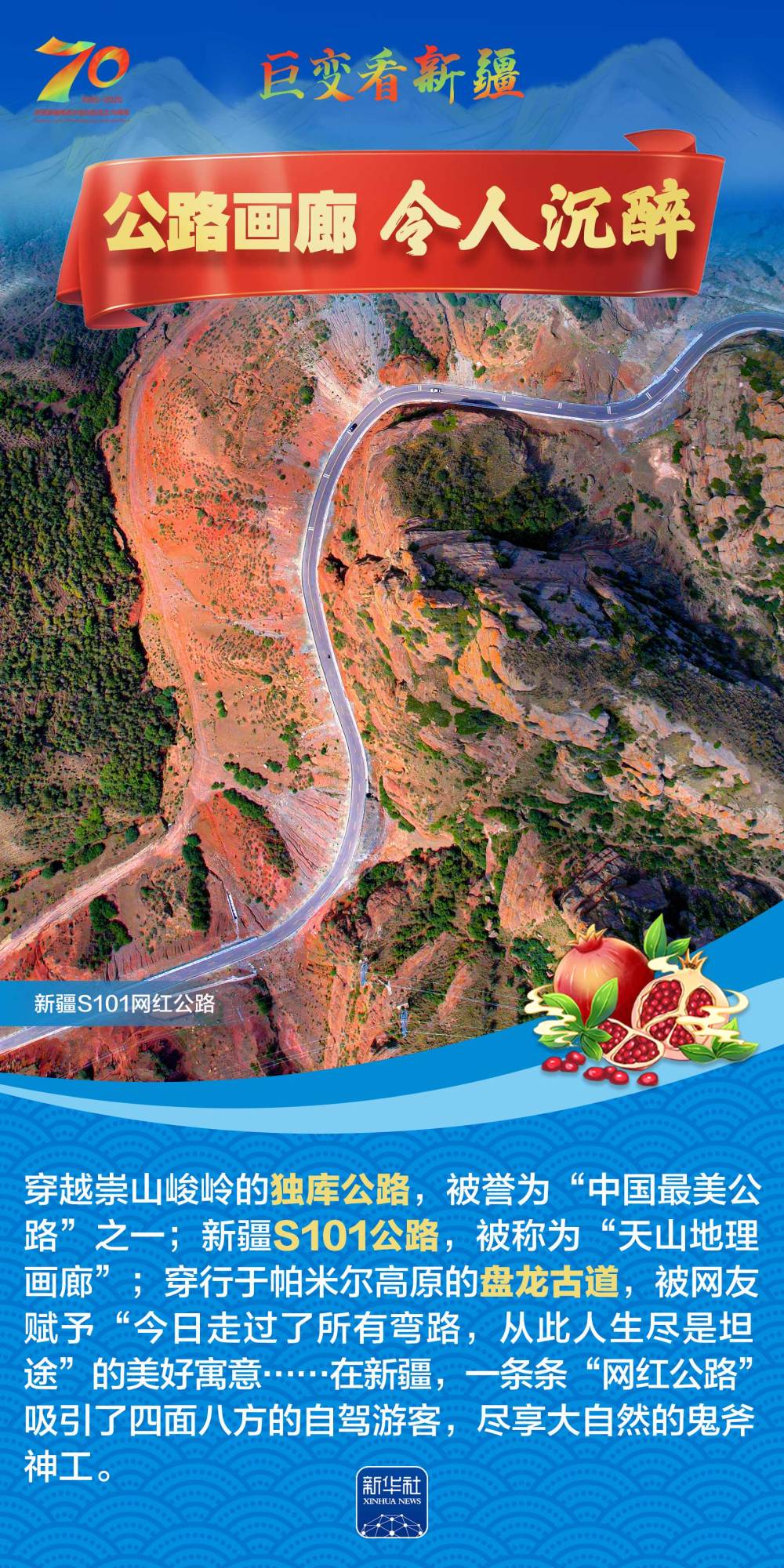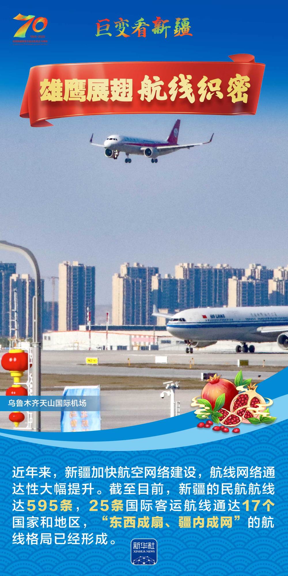 今年是新疆維吾爾自治區(qū)成立70周年。70年來(lái),新疆的交通建設(shè)日新月異。從駝鈴聲聲、馬蹄嘚嘚到鐵流縱橫、銀鷹高翔,一座座交通樞紐輻射四方,一條條“鋼鐵巨龍”蜿蜒逶迤,一個(gè)個(gè)支線機(jī)場(chǎng)星羅棋布,現(xiàn)代化的新疆立體交通網(wǎng)絡(luò)日益形成。讓我們跟隨這組海報(bào),一起見證穿越“三山兩盆”、貫通歐亞大陸的新時(shí)代新疆交通畫卷。