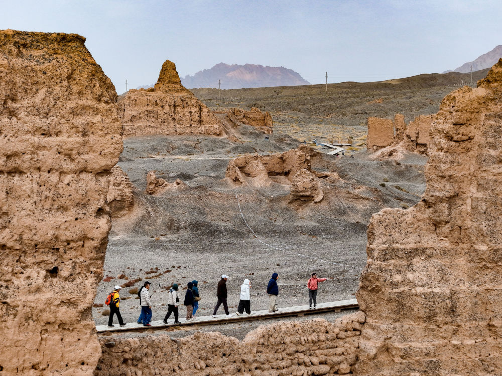 “克孜爾尕哈”意為“紅色哨卡”。夕陽下,這座漢代軍事設施的夯土墻體被映照得棱角分明,泛著淡淡的金紅色?!罢驹谶@里,仿佛看到了當年的烽火傳訊?!币幻慰透锌卣f。