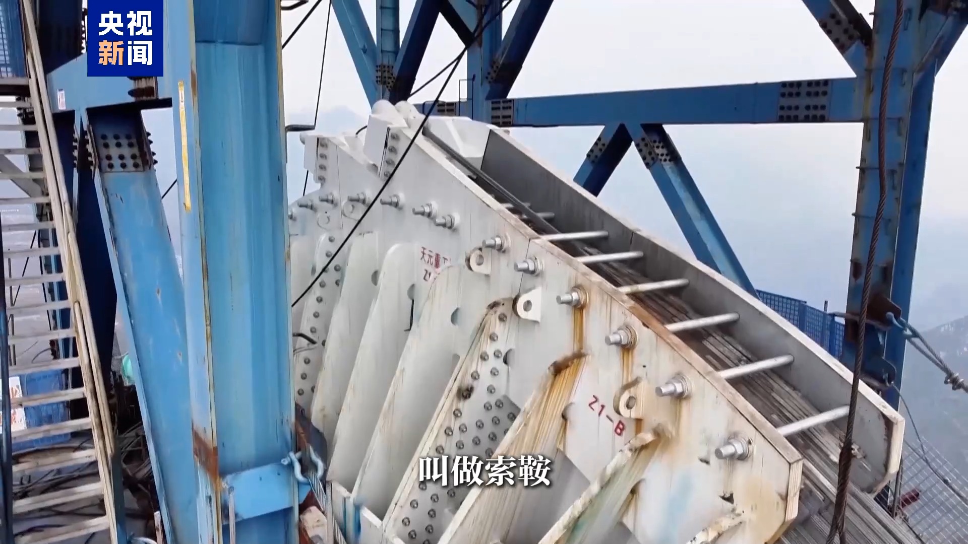大橋上青綠色的主纜就像兩根堅實的扁擔,牢牢地承托著橋面上的荷載。如果說主纜相當于扁擔,那么橋兩側橋頭的主塔就像是扛著扁擔的肩膀。為了給“肩膀”減負,專門特別制作了索鞍,它就像在雙肩之上蓋上了一層海綿墊,起到緩沖的作用。