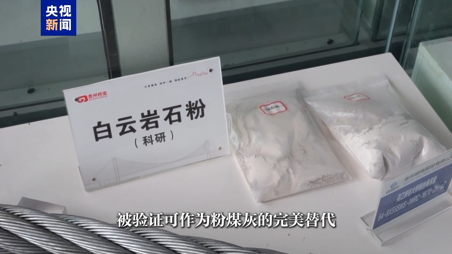 花江峽谷大橋單個錨碇的混凝土澆筑量就達16萬立方米。但在施工過程中,受到材料短缺、運輸難度大等多重因素的制約,澆筑所必須用到的粉煤灰嚴重緊缺,施工進度一度停滯。面臨著工期的壓力,工程團隊在堆積如山的工程廢料中發(fā)現(xiàn)了轉機,路基挖出的白云巖碎石,經過超細研磨后的石粉,被驗證可作為粉煤灰的完美替代,在特定配比下甚至能達到更好的澆筑效果。