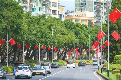 為熱烈慶祝中華人民共和國成立76周年,香港和澳門街頭裝扮一新,處處洋溢著喜慶的節(jié)日氣氛。五星紅旗與港澳區(qū)旗迎風(fēng)飄揚(yáng),祝福標(biāo)語和慶祝海報在街頭巷尾隨處可見。港澳特區(qū)政府與社會各界攜手推出了一系列豐富多彩的慶?;顒雍蛢?yōu)惠措施。