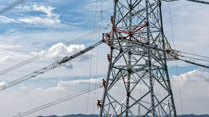 2025年10月1日,重慶送變電公司施工人員在哈密至重慶特高壓直流受端500千伏配套工程(二期)作業(yè)現(xiàn)場工作。新華社發(fā)(周亞 攝)