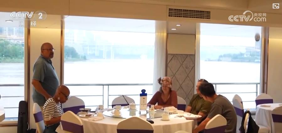 早上六點(diǎn)半,一艘滿載游客從湖北宜昌駛向重慶的長(zhǎng)江游輪??吭诹酥貞c朝天門碼頭,記者在餐廳見到很多外籍游客正在在享受中西合璧的早餐。