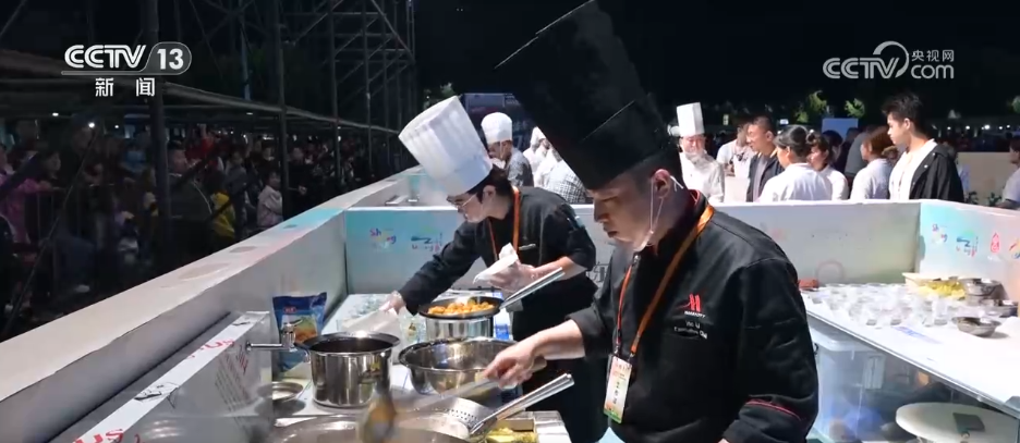 當(dāng)晚活動(dòng)的最大亮點(diǎn)當(dāng)屬與開(kāi)幕式同步啟動(dòng)的吉尼斯世界紀(jì)錄挑戰(zhàn)——“一小時(shí)內(nèi)現(xiàn)場(chǎng)制作并發(fā)放朝天鍋數(shù)量最多”。朝天鍋是濰坊名吃,主要是湯配卷餅。三口直徑超2米的巨型朝天鍋熱氣升騰,20名專業(yè)廚師默契配合完成食材處理、卷餅制作。按照規(guī)則,需在一小時(shí)內(nèi)完成2500份卷餅的制作與發(fā)放。