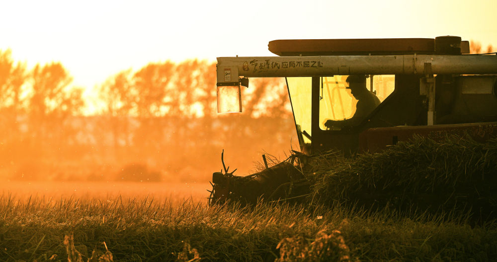 10月3日,農(nóng)戶在北大荒集團(tuán)黑龍江八五六農(nóng)場有限公司第五管理區(qū)搶收水稻(無人機(jī)照片)。新華社發(fā)(黃永興攝)