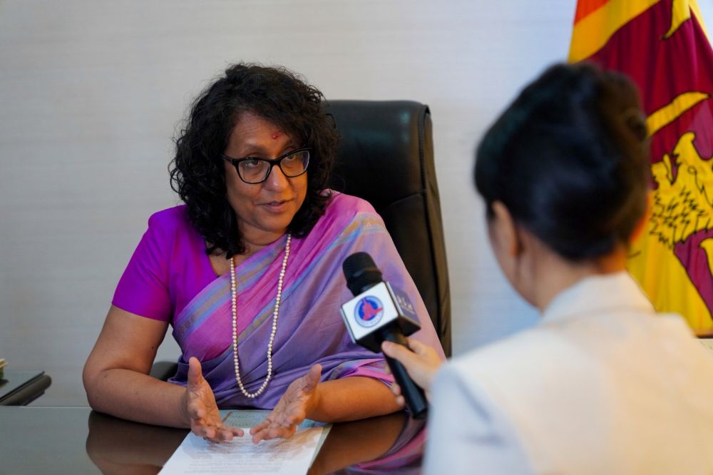 阿馬拉蘇里亞特別提到中國對斯里蘭卡的校服布料援助。她說,今年中國援助的校服布料已滿足斯全國需求,“我們十分感謝這份來自中國人民的珍貴禮物”。