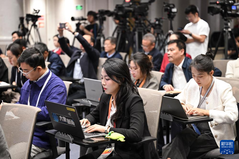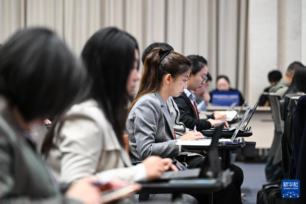 10月14日,國(guó)務(wù)院新聞辦公室在北京舉行“高質(zhì)量完成‘十四五’規(guī)劃”系列主題新聞發(fā)布會(huì),國(guó)家發(fā)展改革委黨組成員、國(guó)家糧食和物資儲(chǔ)備局局長(zhǎng)劉煥鑫,國(guó)家糧食和物資儲(chǔ)備局副局長(zhǎng)錢(qián)毅、副局長(zhǎng)秦玉云介紹“十四五”時(shí)期糧食流通改革發(fā)展成效,并答記者問(wèn)。這是記者在現(xiàn)場(chǎng)工作。新華社記者 陳曄華 攝