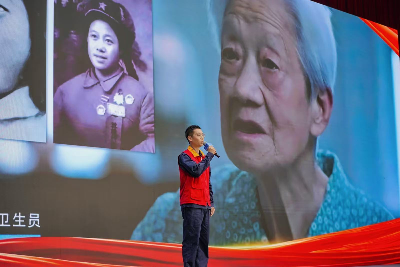“上甘嶺坑道里的烽火雖已遠去,但英雄的故事始終在照亮我們的初心?!眹译娋W(wǎng)孝感供電公司的紅領志愿宣講員劉航,以奶奶王清珍——電影《上甘嶺》中“王蘭”原型的革命經(jīng)歷,為現(xiàn)場點亮了第一束“信仰之光”。