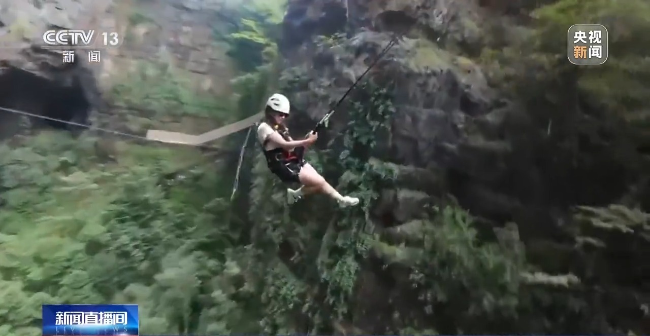 除了用丑萌可愛的物品彰顯個性,旅行“必出片兒”也成為當(dāng)下很多年輕人表達(dá)自我的一種方式。今年暑期開始,貴州開陽縣猴耳天坑景區(qū)異?;鸨_@里是一處典型的巖溶漏斗,直徑約300米,坑深約280米,依托獨(dú)特的地質(zhì)奇觀,當(dāng)?shù)亻_發(fā)出了蹦極、大秋千、探洞等多種極限運(yùn)動。而就在如此驚險刺激的體驗之下,也要出片!
