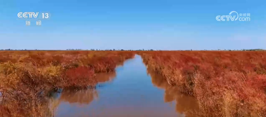 金秋時(shí)節(jié),在江蘇連云港臨洪河口,沿海灘涂濕地披上了多彩的秋裝。連片的堿蓬草在秋風(fēng)中次第變紅,層層疊疊。陽(yáng)光灑下,一株株堿蓬草晶瑩閃亮,紅得耀眼。微風(fēng)拂過,枝葉搖曳生姿,在碧海藍(lán)天的映襯下,美不勝收。