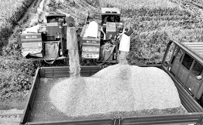 農機在四川農業(yè)大學科技示范點卸裝收獲的香稻。新華社發(fā)