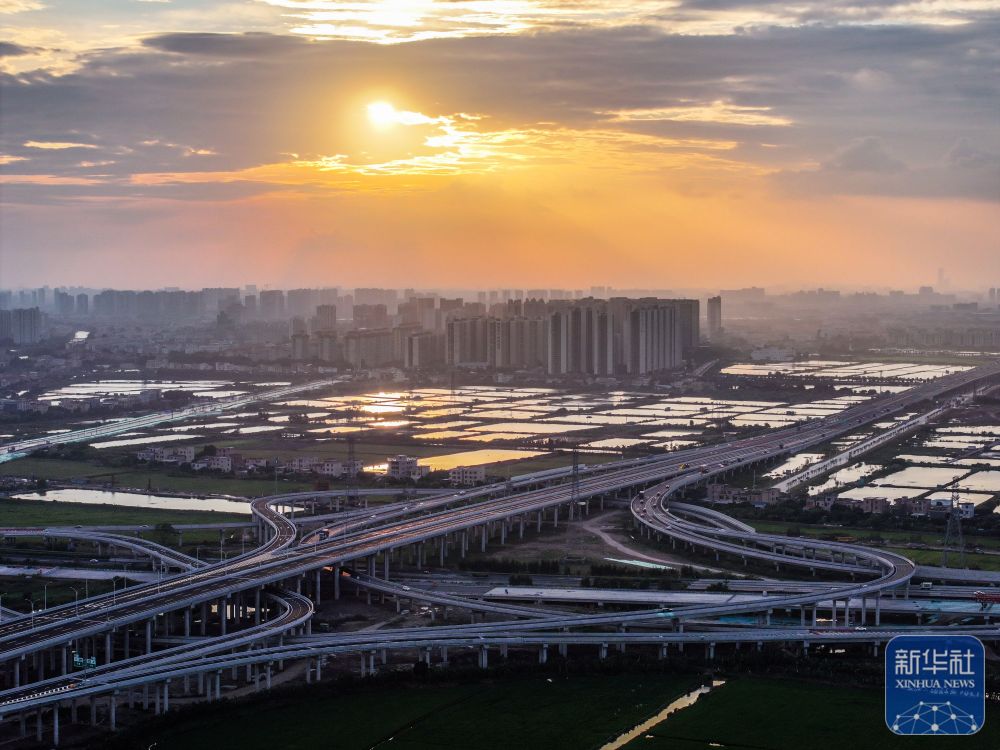 ↑沐浴在落日余暉里的南中高速新隆互通(2024年10月17日攝,無人機(jī)照片)。南中高速橫跨廣州、中山兩市,南通珠海、西進(jìn)江門、東達(dá)深圳,串聯(lián)起粵港澳大灣區(qū)核心區(qū)域東西南北大通道。通車后從廣州南沙15分鐘可至中山城區(qū),20分鐘可達(dá)深圳寶安。新華社記者 劉大偉 攝