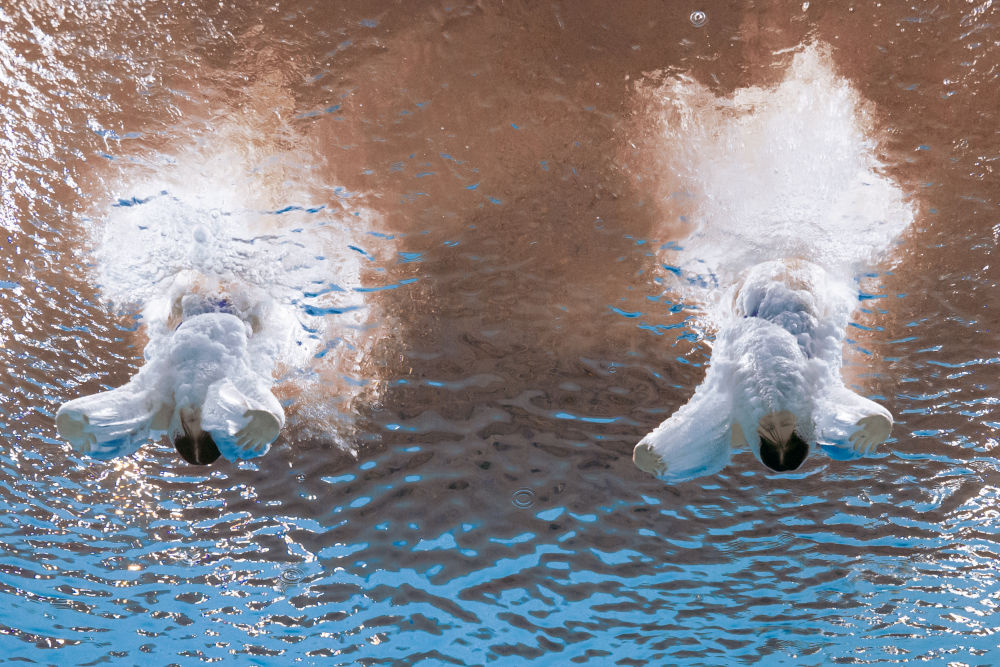 11月2日,廣東隊組合全紅嬋/王偉瑩在跳水女子團體賽雙人10米跳臺項目比賽中。新華社記者 夏一方 攝