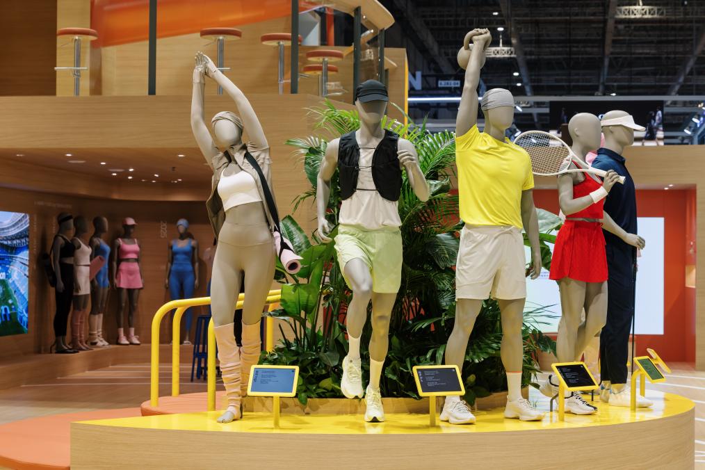 露露樂蒙展臺以“好狀態(tài)趣動場”為主題,展示品牌在瑜伽、跑步、訓練、網(wǎng)球、高爾夫和日常出行六大品類的明星產(chǎn)品。受訪者供圖