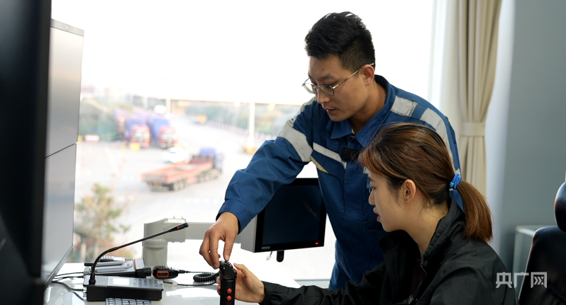 鏡頭從岸線來(lái)到西聯(lián)公司件雜貨數(shù)智中心,這里是整個(gè)碼頭的大腦。落地窗外,“中遠(yuǎn)海運(yùn)長(zhǎng)青”輪穩(wěn)穩(wěn)靠泊。數(shù)智中心內(nèi),工作人員對(duì)著電腦屏幕進(jìn)行操控,上面顯示著碼頭各處的實(shí)時(shí)畫面,有的電腦前還有方向盤,電腦桌下還有剎車、油門。“這里是操控IGV的,通俗來(lái)說(shuō)就是自動(dòng)駕駛的運(yùn)輸車,在這個(gè)操作臺(tái)上,就可以實(shí)現(xiàn)遠(yuǎn)程監(jiān)控,有點(diǎn)像打游戲?!鼻鄭u港西聯(lián)公司操作部副經(jīng)理孫長(zhǎng)杰介紹。