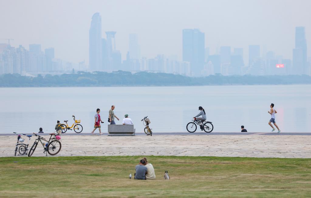 11月15日,參賽選手在田徑項(xiàng)目女子馬拉松比賽中經(jīng)過深圳灣口岸。