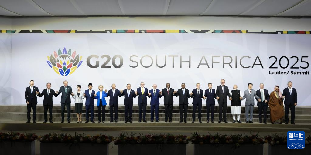 當(dāng)?shù)貢r(shí)間11月22日,國(guó)務(wù)院總理李強(qiáng)在約翰內(nèi)斯堡出席二十國(guó)集團(tuán)領(lǐng)導(dǎo)人第二十次峰會(huì)第一階段會(huì)議,就“包容和可持續(xù)經(jīng)濟(jì)增長(zhǎng)”議題發(fā)表講話。這是與會(huì)領(lǐng)導(dǎo)人集體合影。新華社記者 黃敬文 攝