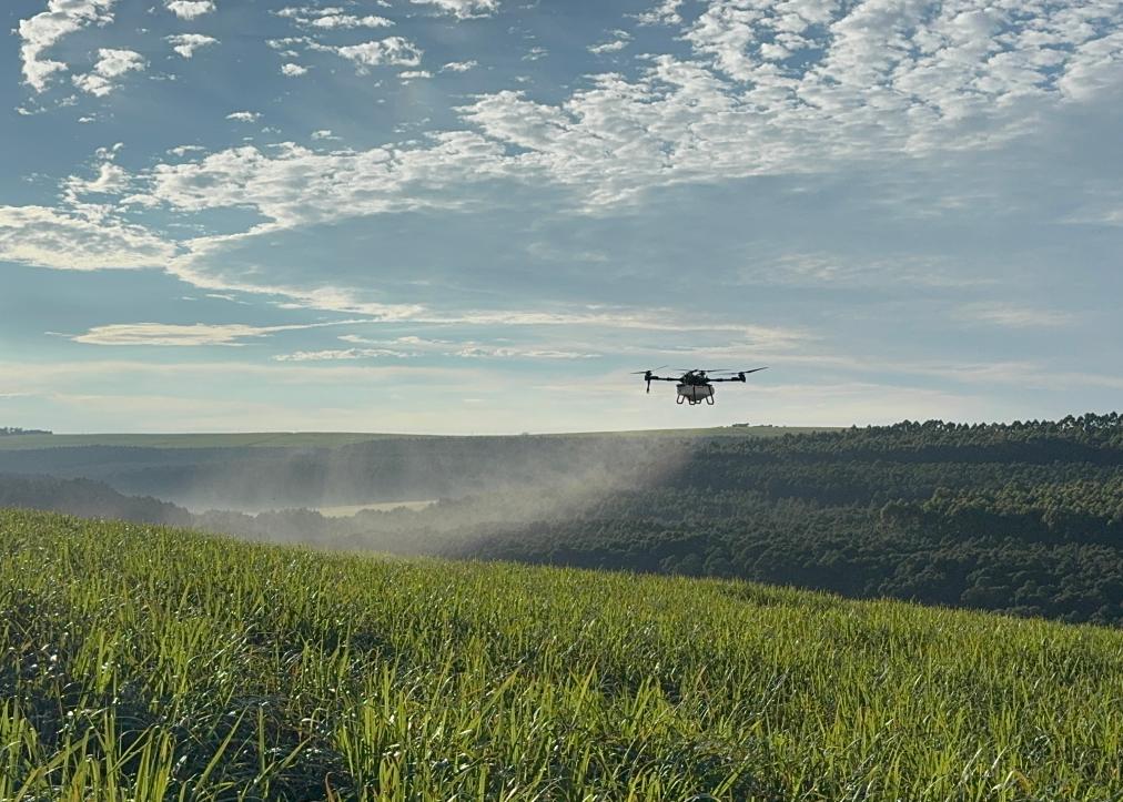 2025年3月25日,在南非夸祖魯-納塔爾省的方廷希爾莊園,中國農(nóng)用無人機為甘蔗林噴灑殺菌劑。新華社記者 白舸 攝