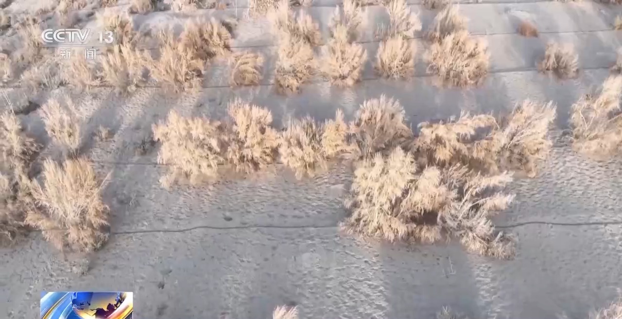 新疆阿瓦提縣林業(yè)和草原局生態(tài)修復(fù)科主任 努爾吉馬力·艾木都拉:把平地上的閥門關(guān)上,然后把全部壓力給到高處沙包上的滴灌管道。再生水來了,水源充足以后,現(xiàn)在成活率達到75%以上了。