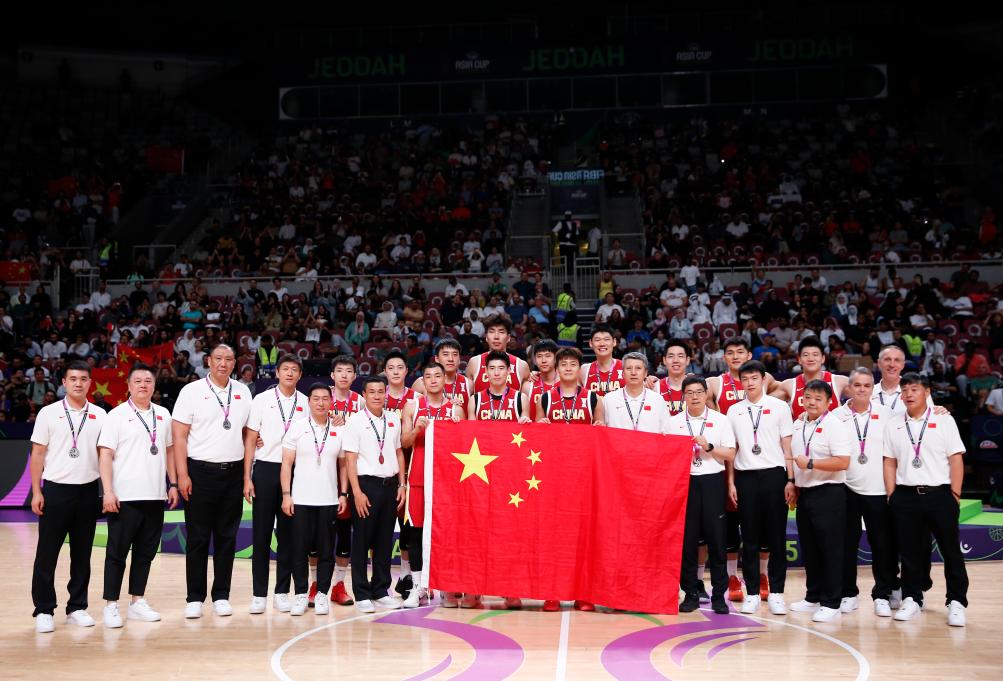 8月17日,在2025國際籃聯(lián)亞洲杯決賽中,中國隊獲得亞軍。圖為中國隊在頒獎儀式后合影。新華社記者 王東震 攝