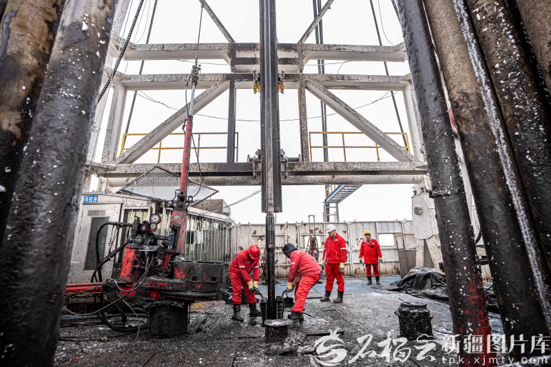 12月8日,中國石油新疆油田吉慶作業(yè)區(qū)頁巖油JHW74-33井現(xiàn)場鉆機轟鳴。徐志遠 攝