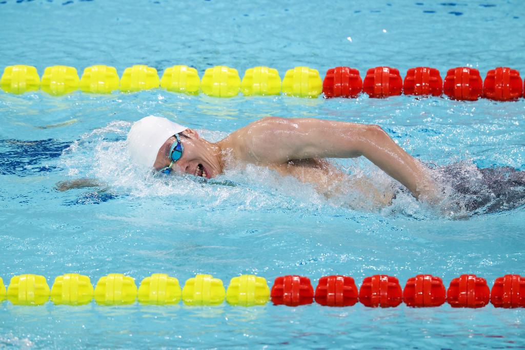 12月13日,浙江隊(duì)選手謝志立在男子400米自由泳S9級(jí)決賽中。最終,他獲得冠軍。新華社記者 梁旭 攝
