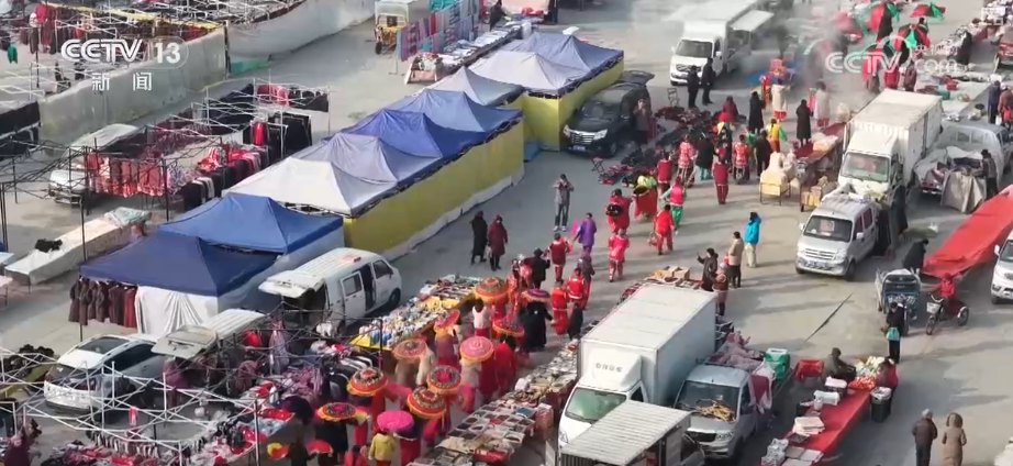 除了吃喝購,精彩的民俗表演更添喜慶氛圍。辭舊迎新之際,附近村子的鄉(xiāng)親們組成社火隊伍專程趕來。大家身著戲服,伴著歡快鼓點,扭秧歌等節(jié)目輪番上演,用靈動舞步和翻飛道具,把新年的祝福傳遞給在場每一個人。