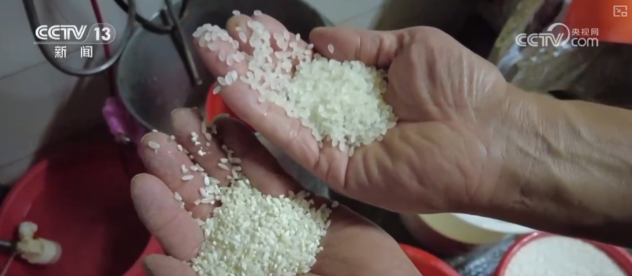 想要腸粉皮爽滑而有彈性,米漿的配比至關重要。這其,中新米提供米香,陳米則負責腸粉皮的韌性。兩種米充分洗凈后浸泡到米粒一捏即碎的程度,這個過程通常需要4小時。