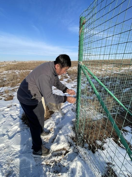 高萬(wàn)東在修復(fù)損壞的長(zhǎng)城保護(hù)圍欄。新華社發(fā)