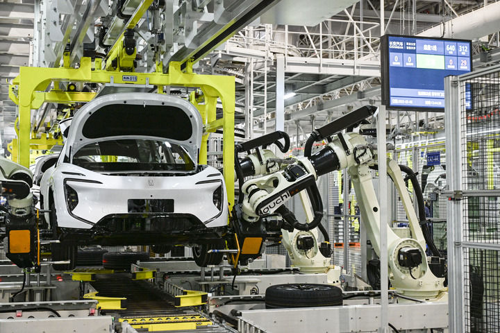 2025年3月6日在位于重慶的長安汽車數(shù)智工廠總裝車間拍攝的自動化生產作業(yè)現(xiàn)場。新華社記者 王全超 攝