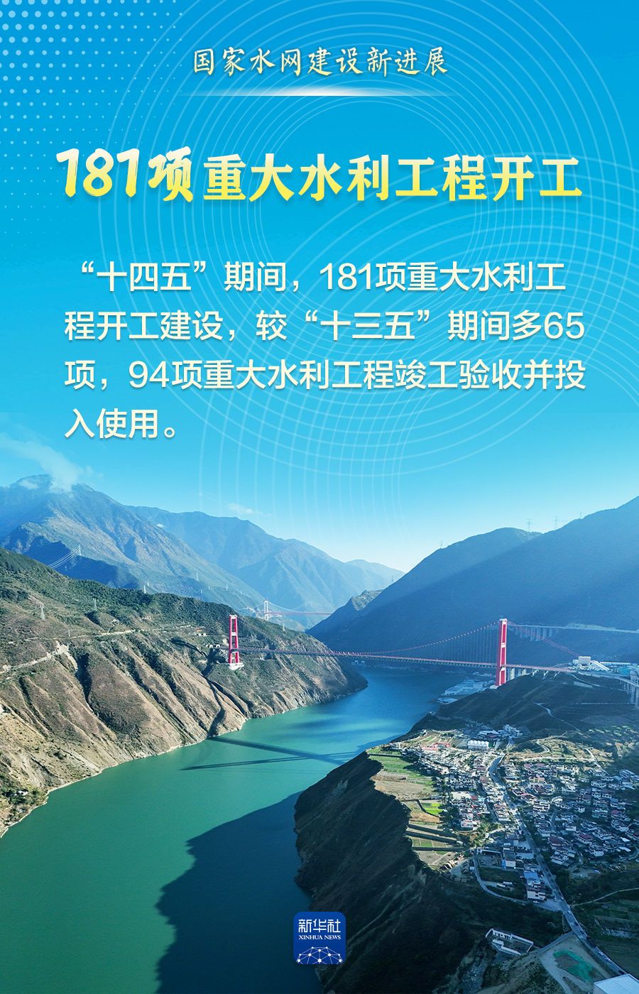 江河安瀾,治水興邦?!笆奈濉逼陂g,全國完成水利建設(shè)投資5.68萬億元、181項(xiàng)重大水利工程開工建設(shè)、國家水網(wǎng)覆蓋范圍占國土面積的比例達(dá)80.3%……一項(xiàng)項(xiàng)豐碩成果,既勾勒出清水綠岸、魚翔淺底的生態(tài)畫卷,更織密守護(hù)萬家燈火的水安全保障網(wǎng),為經(jīng)濟(jì)社會高質(zhì)量發(fā)展注入強(qiáng)勁動能。