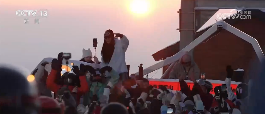 每當(dāng)傍晚,山頂上還有很多雪友喜愛的“夕陽派對”,在太陽快落山的時候,穿著五顏六色滑雪服的雪友們會從四面八方匯聚到雪場的山頂上,大家一起看橙紅色的夕陽慢慢落下,跟著現(xiàn)場音樂韻律,盡情歡呼跳躍,享受這份活力。