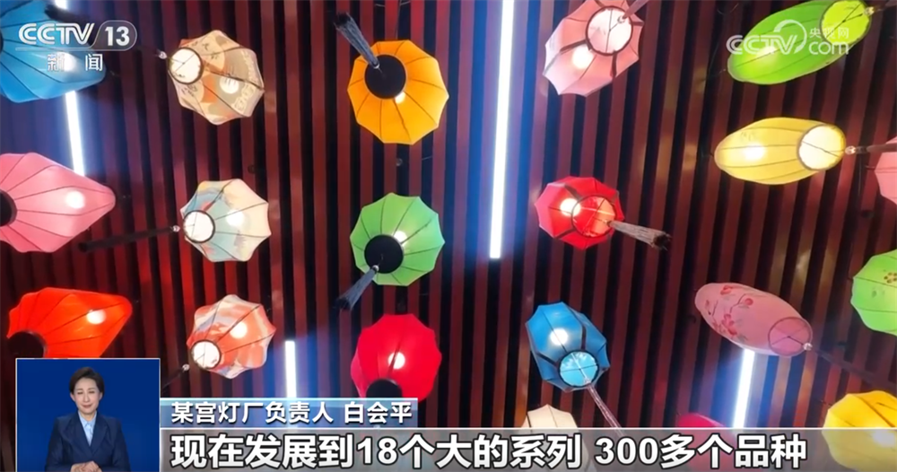某宮燈廠負(fù)責(zé)人 白會(huì)平:通過跟大專院校合作,研發(fā)新的產(chǎn)品,每年都得有一個(gè)新的突破?,F(xiàn)在我們國潮風(fēng)的燈籠特別受年輕消費(fèi)群體的喜歡。原來我們是單一的幾個(gè)品種,現(xiàn)在發(fā)展到18個(gè)大的系列、300多個(gè)品種,而且根據(jù)客戶的要求還可以量身定做。
