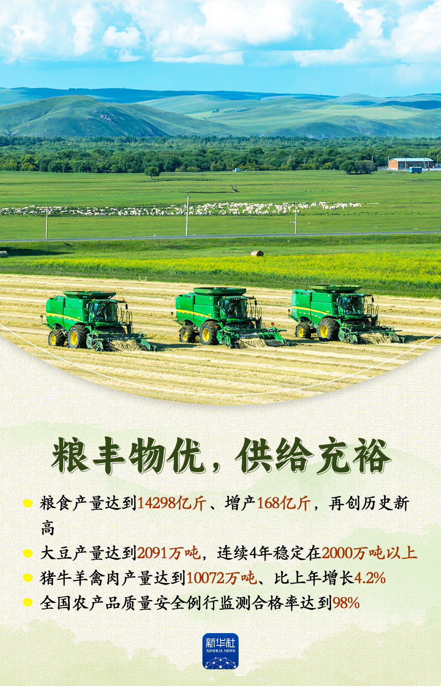 國務院新聞辦公室22日舉行新聞發(fā)布會,農業(yè)農村部相關負責人介紹加快農業(yè)農村現(xiàn)代化,扎實推進鄉(xiāng)村全面振興有關情況。2025年,我國農業(yè)農村發(fā)展保持穩(wěn)中有進、穩(wěn)中向好的勢頭,為推動經濟社會高質量發(fā)展提供了基礎支撐。跟隨這組海報,一起來看。