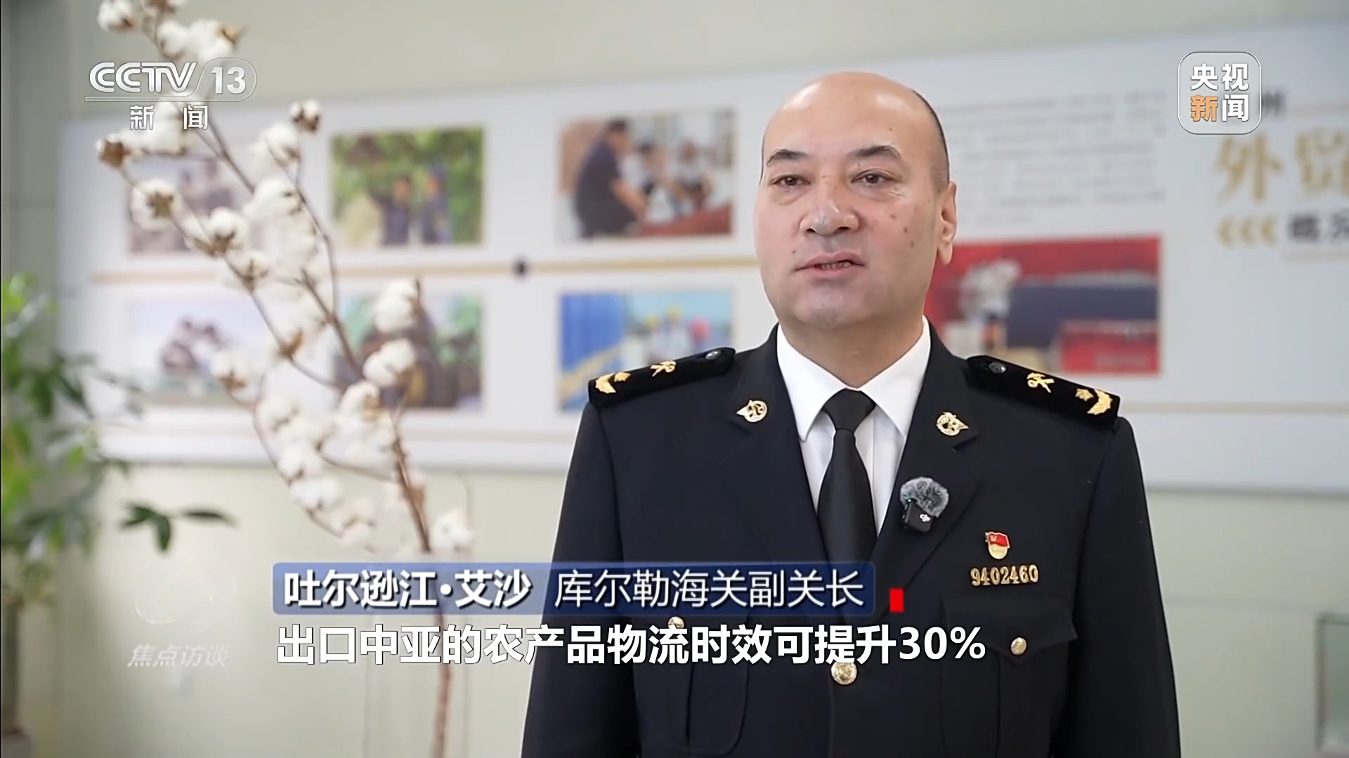 庫爾勒海關副關長 吐爾遜江·艾沙:出口中亞的農產品物流時效可提升30%,大大帶動巴州特色農產品、鮮食產品開拓中亞和歐洲市場。為了助力新疆發(fā)展,庫爾勒海關對鮮活產品實行“隨報隨查、隨查隨放”,整體查驗時間壓縮60%。