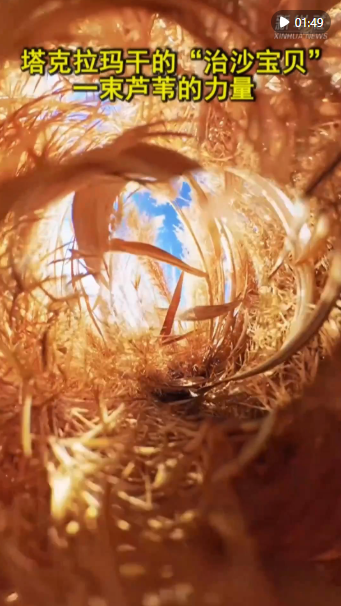 在這片人與自然角力又共生的土地上,蘆葦不僅是治沙的材料,更成為一種精神象征。就像圖爾蓀江所說的:“我們一代代人,就像這蘆葦?shù)母?,只要扎得深,就一直?huì)有生命力?!痹谒死敻蛇吘墸粋€(gè)個(gè)草方格正默默延伸,它們編織的不僅是沙障,更是沙漠邊緣村莊對(duì)未來的信念與希望。