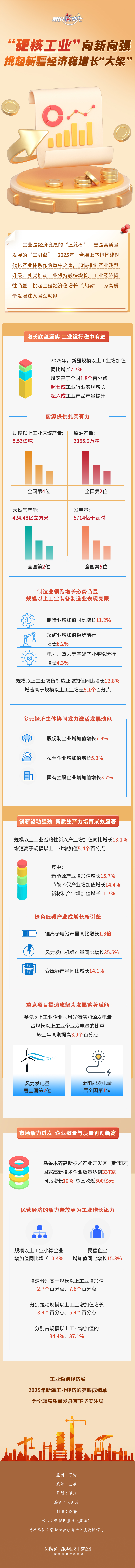 2025年,新疆把構(gòu)建現(xiàn)代化產(chǎn)業(yè)體系作為重點(diǎn)任務(wù),持續(xù)推動(dòng)產(chǎn)業(yè)轉(zhuǎn)型升級(jí),工業(yè)經(jīng)濟(jì)實(shí)現(xiàn)較快增長(zhǎng),韌性顯著增強(qiáng),挑起新疆經(jīng)濟(jì)穩(wěn)增長(zhǎng)“大梁”,為高質(zhì)量發(fā)展注入強(qiáng)勁動(dòng)力。本期《數(shù)說(shuō)“新”變化》為您解讀2025年新疆工業(yè)經(jīng)濟(jì)發(fā)展的亮點(diǎn)與特征。