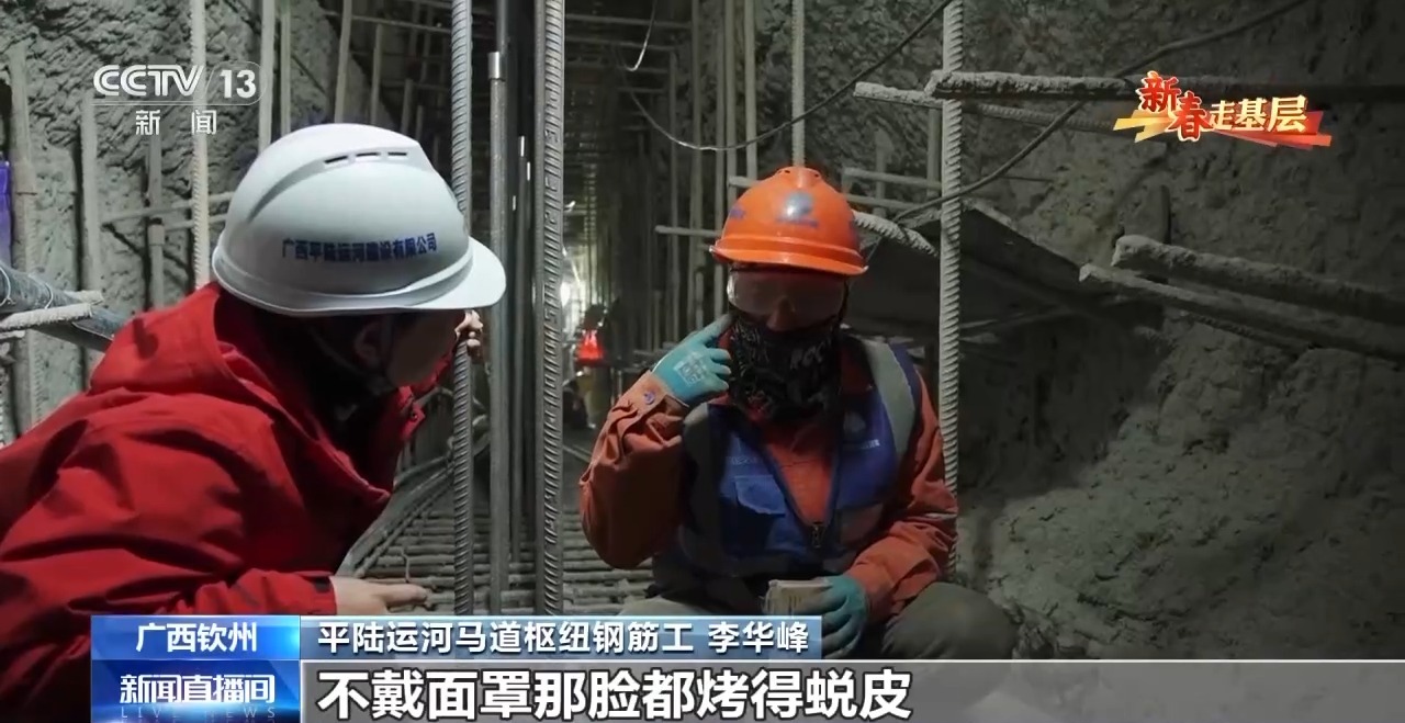 平陸運(yùn)河馬道樞紐鋼筋工 李華峰:你看我戴個(gè)布面罩,不戴面罩臉都烤得蛻皮,烤狠了容易臉容易烤爛,溫度要有幾千攝氏度,電焊比氣割的溫度要高。