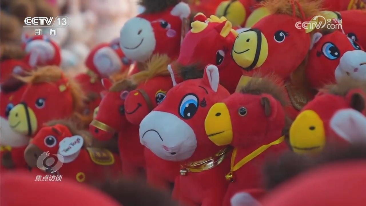 近年來,生肖文化、非遺主題的文創(chuàng)成為了新的過年硬通貨,給孩子帶上兩個(gè)馬年玩偶也是今年的潮流。在浙江義烏,今年春節(jié)年貨市場(chǎng)里,生肖經(jīng)濟(jì)日益火熱使得一款“哭哭馬”玩偶意外走紅。縫反嘴的“錯(cuò)版小馬”委屈的表情不但沒有被消費(fèi)者嫌棄,反而因?yàn)樘峁┝霜?dú)特的情緒價(jià)值,很快就成了爆款。