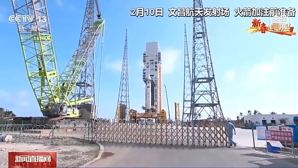 總臺央視記者 王曉丹:由于長征十號的測發(fā)指控大樓還在建設(shè)當(dāng)中,為了確保各項(xiàng)試驗(yàn)任務(wù)如期推進(jìn),科研人員暫時把火箭后端測發(fā)系統(tǒng)臨時搭建在集裝箱方艙內(nèi),在這里對火箭進(jìn)行發(fā)射前的各項(xiàng)遠(yuǎn)程控制、測試和檢查等工作。