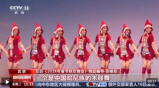 總臺(tái)《2026年春節(jié)聯(lián)歡晚會(huì)》舞蹈編導(dǎo) 蘇婭菲:這次的作品中有中國(guó)的兩個(gè)不同的舞種,一個(gè)是哈尼族的木屐舞,一個(gè)是中國(guó)傈僳族的阿尺木刮,它也是國(guó)家級(jí)非遺。還有兩支來(lái)自國(guó)外不同的團(tuán)隊(duì),一個(gè)來(lái)自匈牙利,表演的是匈牙利的萊蓋涅什,是他們的傳統(tǒng)民族舞蹈,一個(gè)是西班牙的一支舞蹈團(tuán),表演的就是弗拉門(mén)戈。