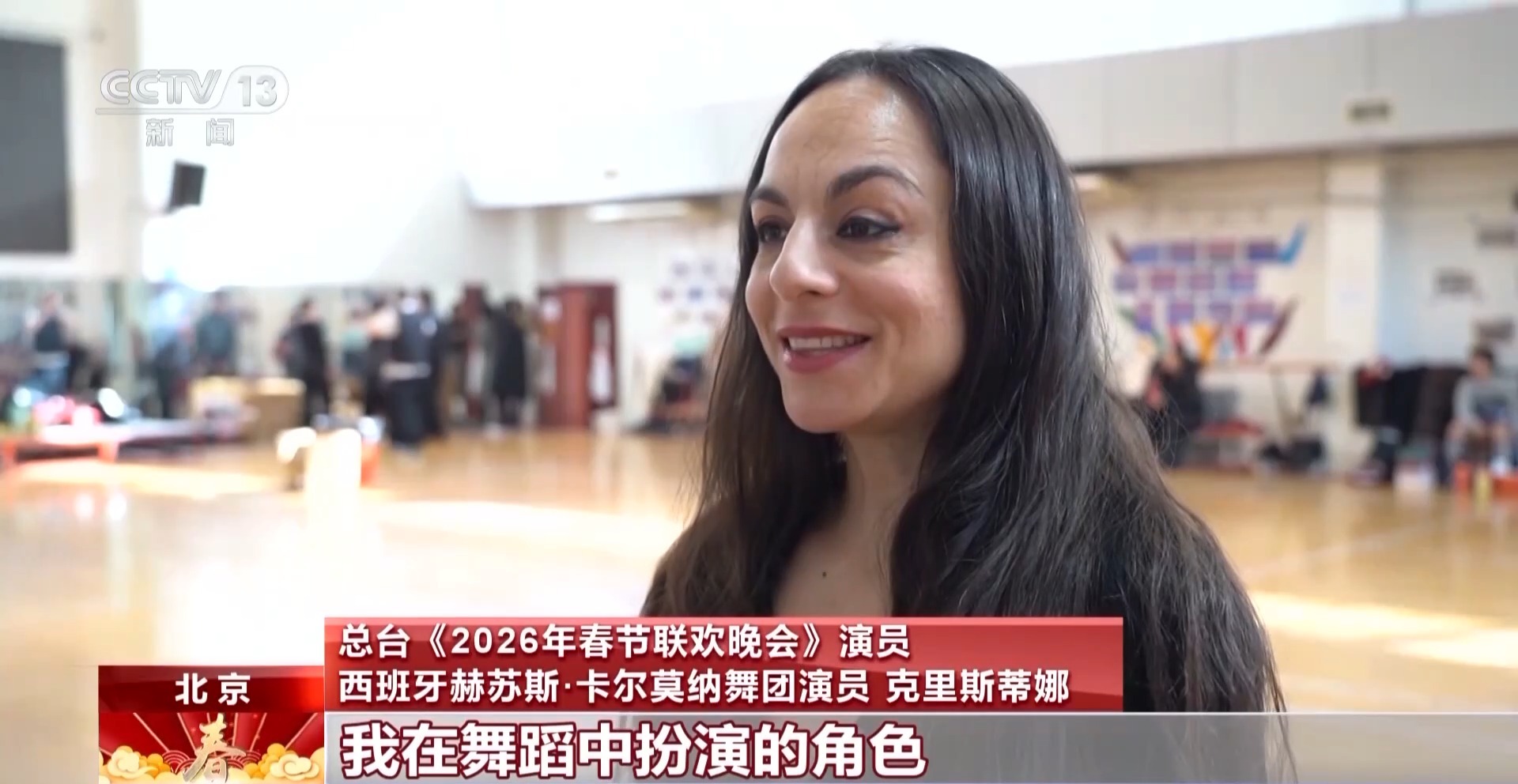 總臺(tái)《2026年春節(jié)聯(lián)歡晚會(huì)》演員 西班牙赫蘇斯·卡爾莫納舞團(tuán)演員 克里斯蒂娜:我在舞蹈中扮演的角色展現(xiàn)了西班牙如火般的熱情,這段舞蹈想要傳遞的是世界上的各個(gè)民族是可以融合在一起的。每個(gè)國(guó)家、每種文化都可以在團(tuán)結(jié)中找到共鳴。這樣的畫(huà)面很美,也希望觀眾能享受這種獨(dú)特的融合之美。